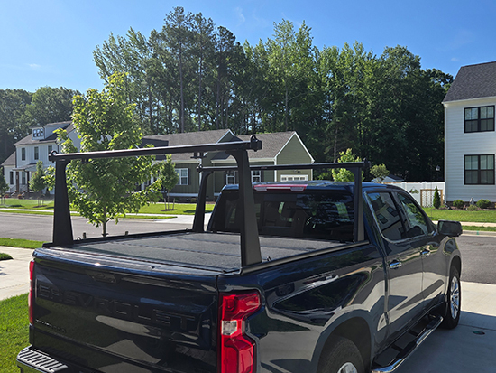 " I run a handyman business and I have a 23 Silverado with a hard folding bed cover. I haul lots of lumber, ladders, tools, pipe, etc. I bought this rack to make my bed more flexible and reduce the number of times I need to haul a trailer to a job. Long story short, it's a fantastic purchase. I added on 8 tie down points when I purchased. I installed it myself in about two hours in the driveway. It was an easy install, although I could have saved some time if I had measured all my centers and overhangs before I started installation. The rack works great. It is strong and lightweight, and it looks slick. I get comments on it all the time. Best of all, my bed cover opens fine. I highly recommend this rack. I also recommend buying extra tie down points unless you already have a tie down method that works on straight racks. "