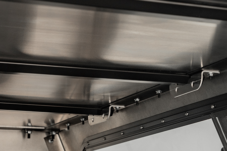 Water-shedding design and waterproof hinge direct water away from the truck bed. Strategically designed seals keep elements out when properly installed.