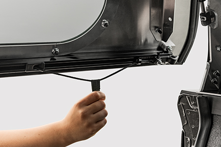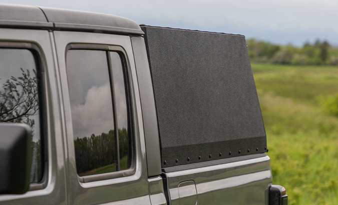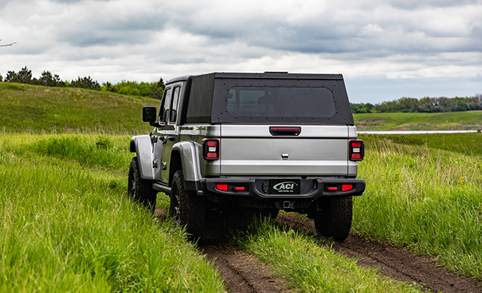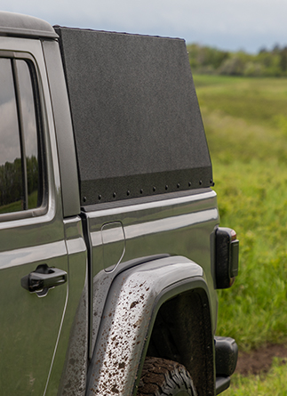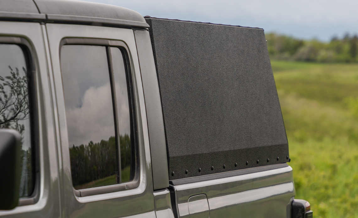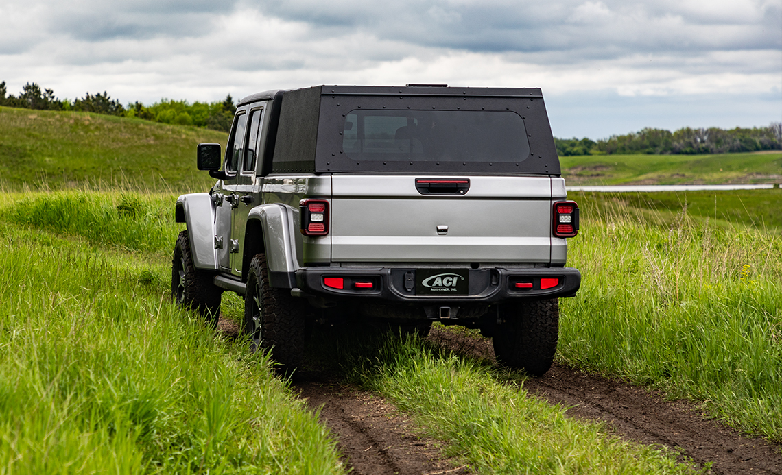Weldless construction with urethane coated aluminum panels and built-in extruded bows ensures superior strength while weighing roughly 80-95 lbs. If necessary, remove in only 10 minutes with two people.3rd brake light not included on Jeep Gladiator.