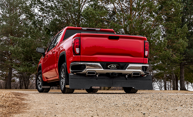 Contoured specifically to your truck for the best possible protection and without contacting OEM exhaust. Stainless steel mounting brackets utilize existing holes and hardware with an anti-sailing design.Perforated frame for OEM Dual Exhaust. For dually, Tow Flap Extension is needed for full coverage.