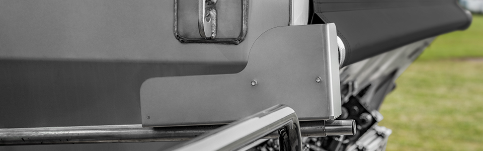 Heavy duty, corrosion resistant anodized aluminum construction with nylon components deliver non-binding smooth operation and increase longevity. Mount at front, rear or sides with eight 45-degree storage positions.